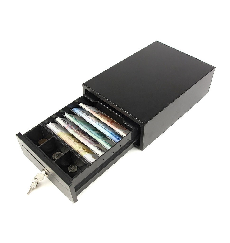 В Санкт-Петербурге, в магазине на улице Ватутина, 17Б, каждый день можно приобрести новые маленькие денежные ящики с ключами Форм-2М российского производства. Эти ящики открываются и закрываются одним нажатием на выдвижную часть. Также есть возможность закрыть ящик на замок. В комплект входят два ключа. Внутри пять секций для банкнот и три ячейки для мелочи. Размеры ящика: 20 см в ширину и 30 см в глубину.